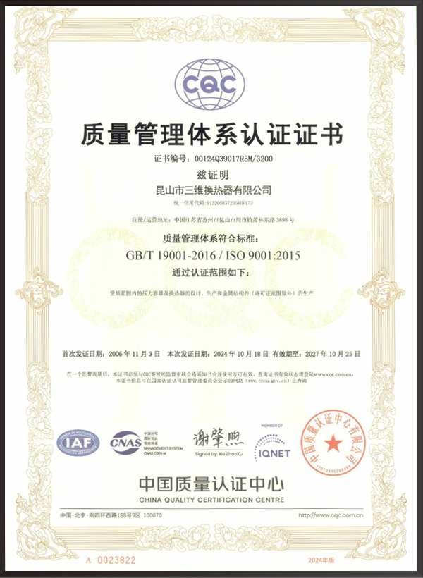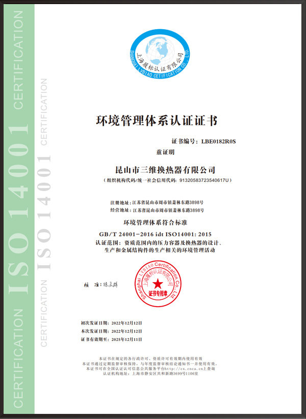 昆山市三維換熱器有限公司注冊資本5000萬元,資產2.1億元,公司地址位于江蘇省昆山市周市鎮(zhèn)蕭林東路3898號,法人代表為顧安生,公司設有技術部、生產部、檢驗部。